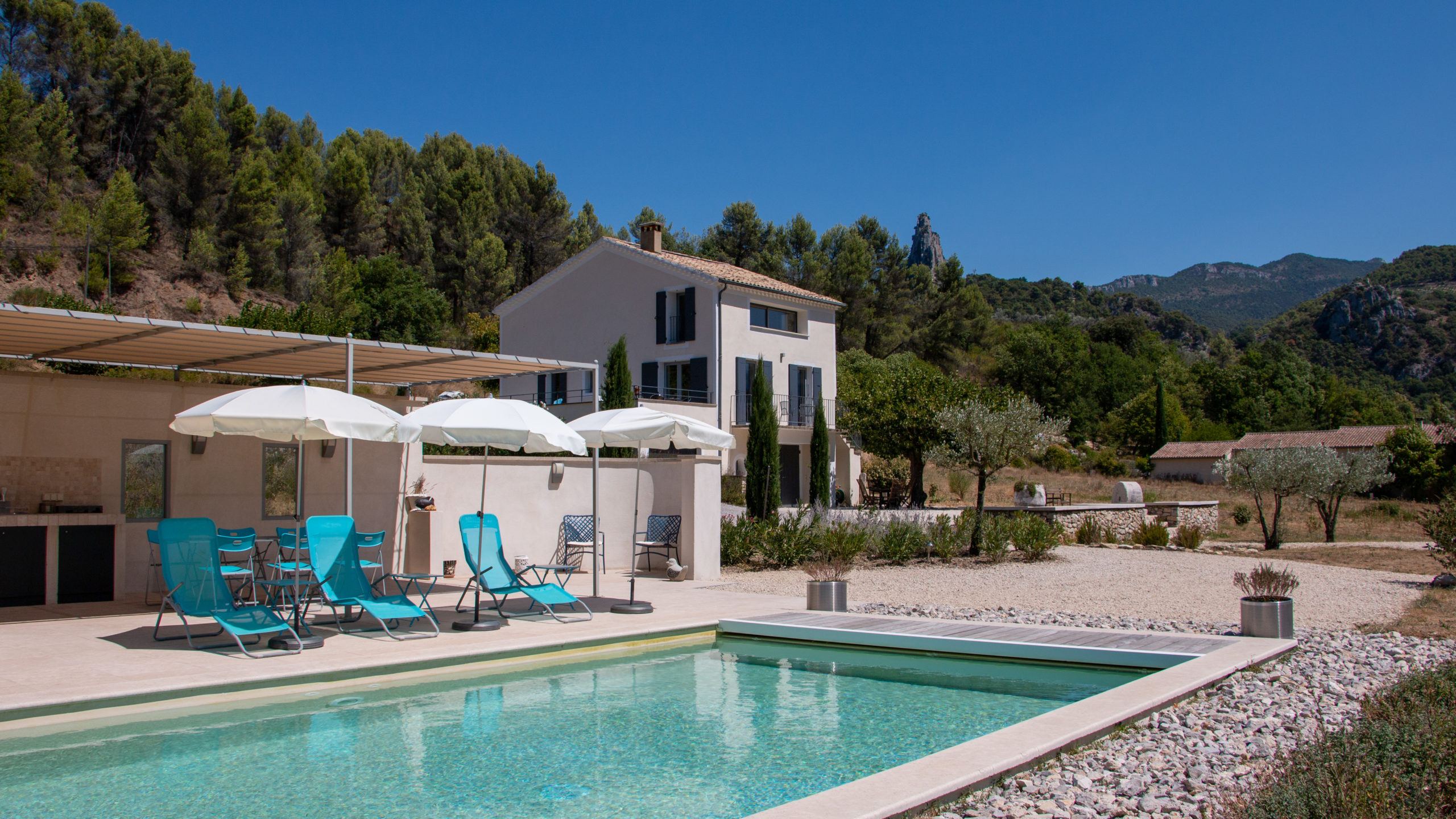 Das Ferienhaus „la petite pose“ in Bildern. Werfen Sie einen Blick in die Zimmer, die Essküche und den Olivenölkeller.